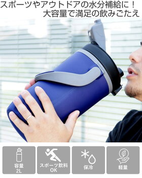 軽いのにたっぷり入る2Lの大容量で満足の飲みごたえ!ダイレクトにごくごく飲めるそのまま飲める直飲みタイプなので大量の水分補給が必要なシーンや長時間のスポーツにピッタリです。