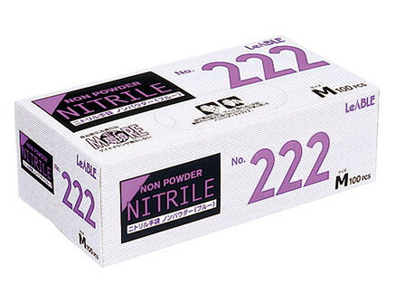 LeABLE No.222 ニトリルノンパウダー ブルー 【粉なしタイプ】【2000枚入(100枚入×20箱)】 丈夫で幅広い用途に使いやすいニトリル製使い捨て手袋です。 粉なしタイプ 食品衛生法適合品 使い切り手袋 使い捨て手袋 ディスポ手袋 ニトリル手袋