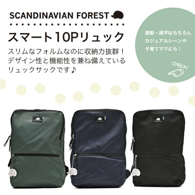 スカンジナビアンフォレスト スマート 10ポケット リュック 撥水加工 北欧 ハリネズミ レディース メンズ カジュアル 通勤 通学