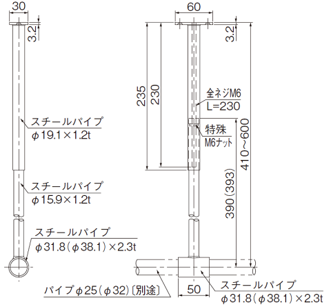 詳細図面 関連商品 セイフティブラケット パイプジョイント セフティブラケット 32 止・通 首長セフティブラケット 32 止・通 横受け 2つ穴 32 止・通 丸パイプ用丸型キャップ φ32 プラチキャップ 32 三方 32 三方回転 止 32 エルボ 32 エルボ回転止 32 ストレート 32 ストレート回転止 32 チーズ T字 32 チーズ回転止 T字 32 クロス 十文字 32 クロス回転止 十文字 32 四方 32 パイプ自在吊棒 32 ソケット 32 ステンレス巻パイプ ステンレス巻パイプ 1本単位 ステンレス巻パイプ 10本入り/ケース