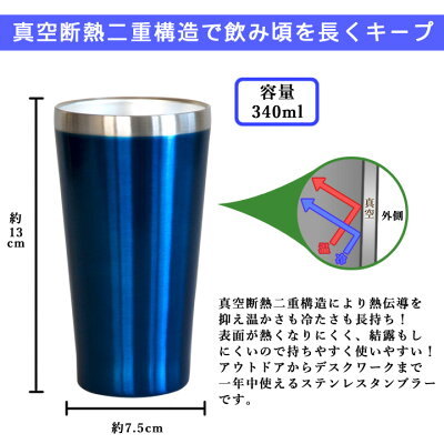 【送料無料 名入れ プレゼント タンブラー】 真空ステンレス ペア メタルサーモ タンブラー 340ml | 保冷 保温 名前入り ステンレスタンブラー おしゃれ グラス ビアグラス 結婚祝い ギフト 還暦祝い 誕生日プレゼント ビール 焼酎 酒