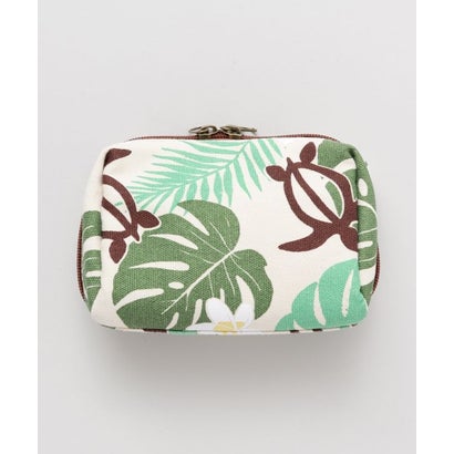 ホヌとモンステラが全体に描かれているコスメポーチ。