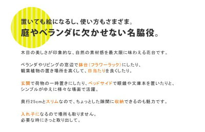 木目の美しさが印象的な、自然の素材感を最大限に味わえる花台です。